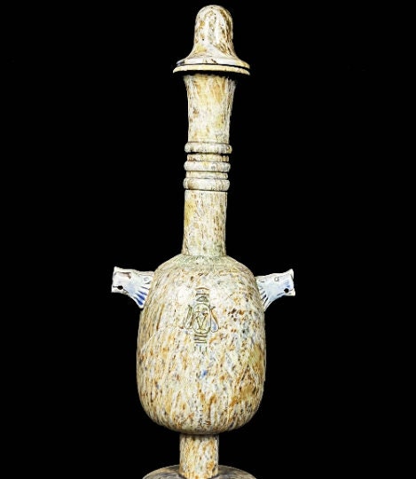 Unique Ancient Egyptian lidded Jar with beautiful Egyptian hieroglyphs inscriptions – Handmade in Egypt