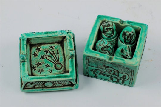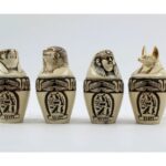Unique Box of Canopic Jars Inside Egyptian Handmade From Limestone With Artistic Green Color Touch – Jaw-Dropping Details!