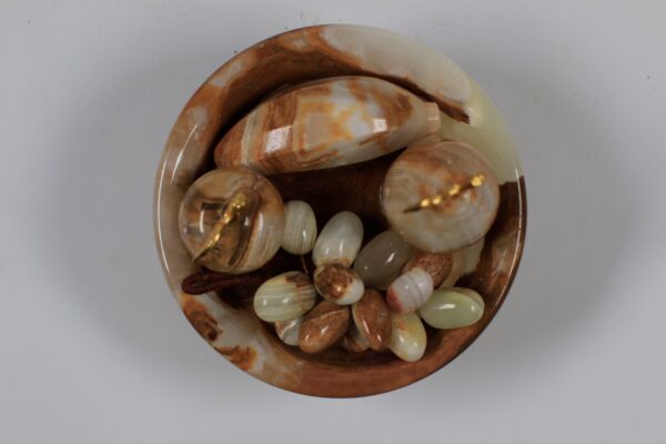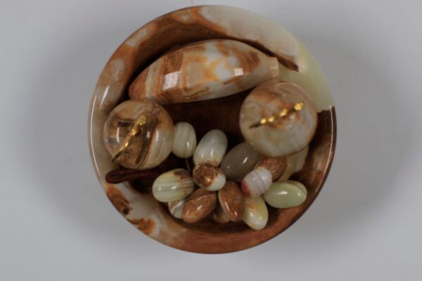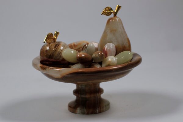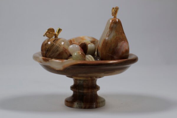 Unique Brown/Light Green Onyx Fruit Bowl with Fruits – Handmade in Egypt 2.5″H * 5″W