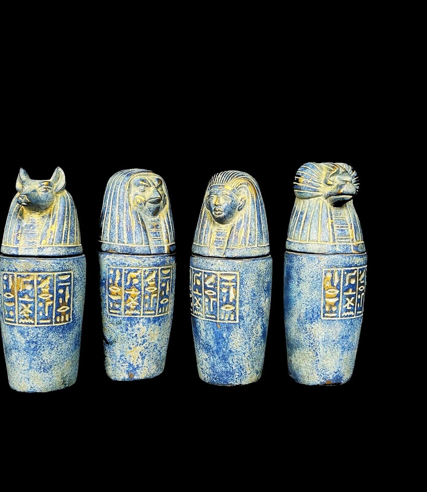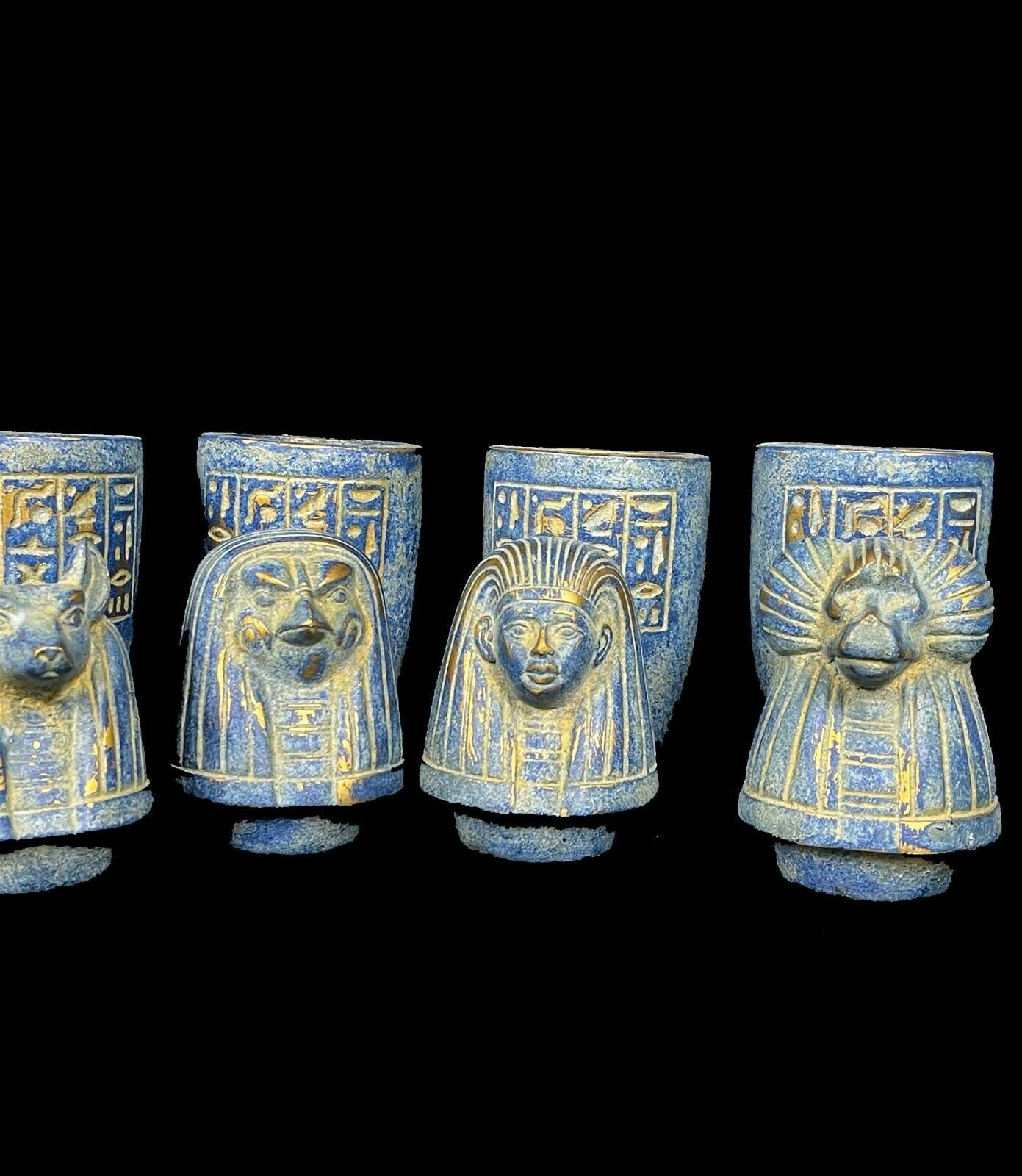 Unique Canopic jars – The Four fantastic Blue Jars made for you with the beautiful Blue color – Handmade from Blue stone -made in Egypt