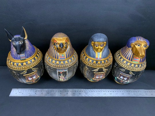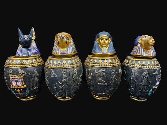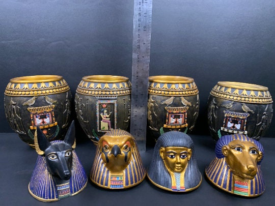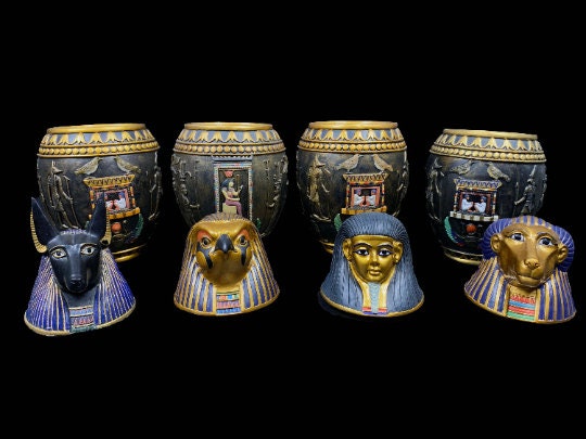 Unique Canopic jars – The Four fantastic Canopic Jars made for you with the beautiful colors and the Egyptian gods- Handmade -made in Egypt