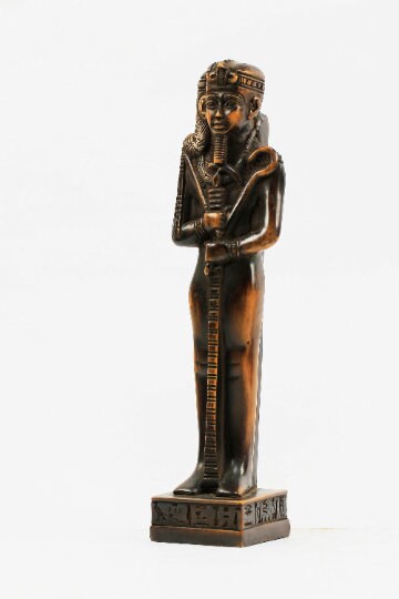 Unique Egyptian Handmade Altar Statue of Khonsu The God of Moon & Time standing and holding the stick – our item is made with Egyptian soul