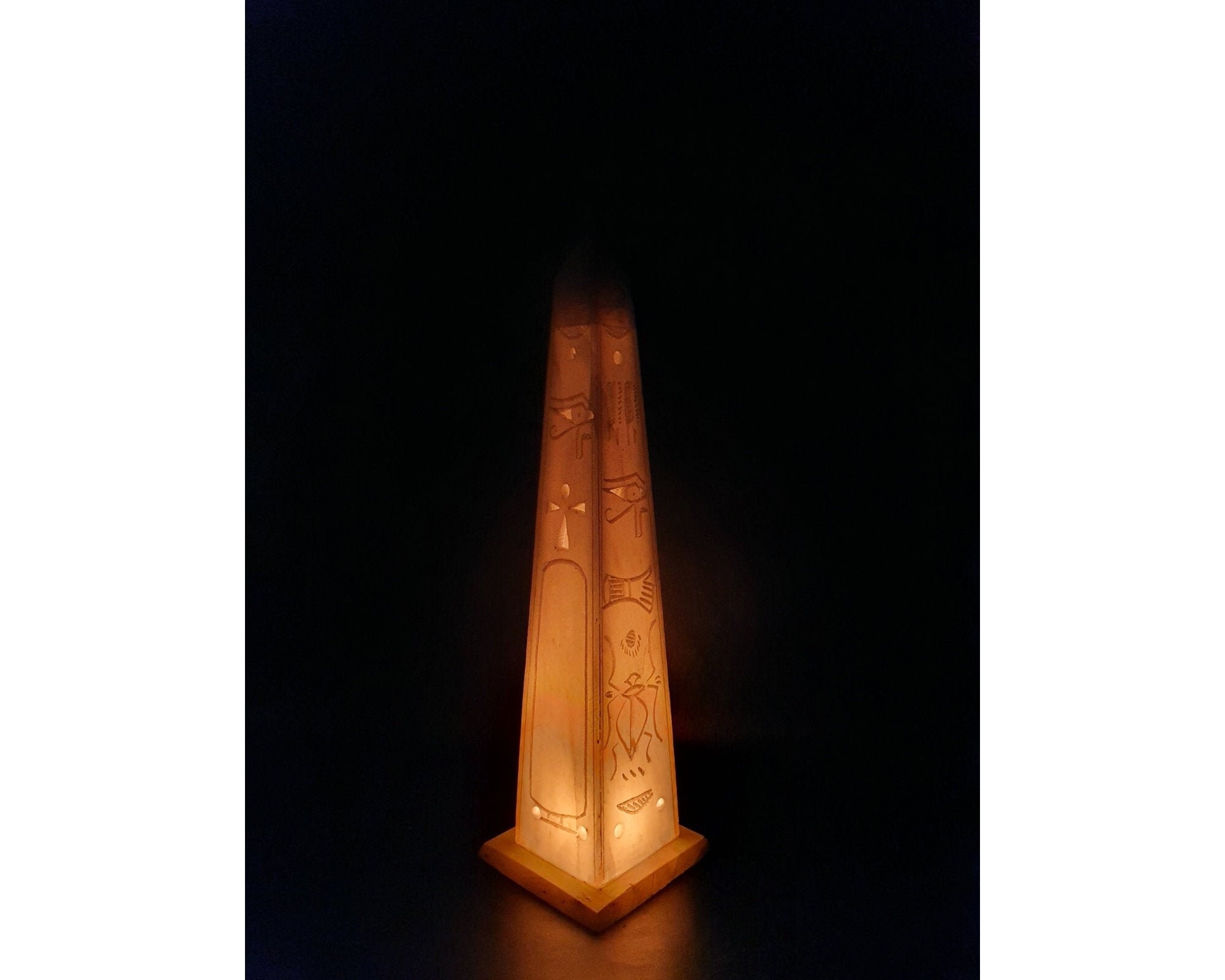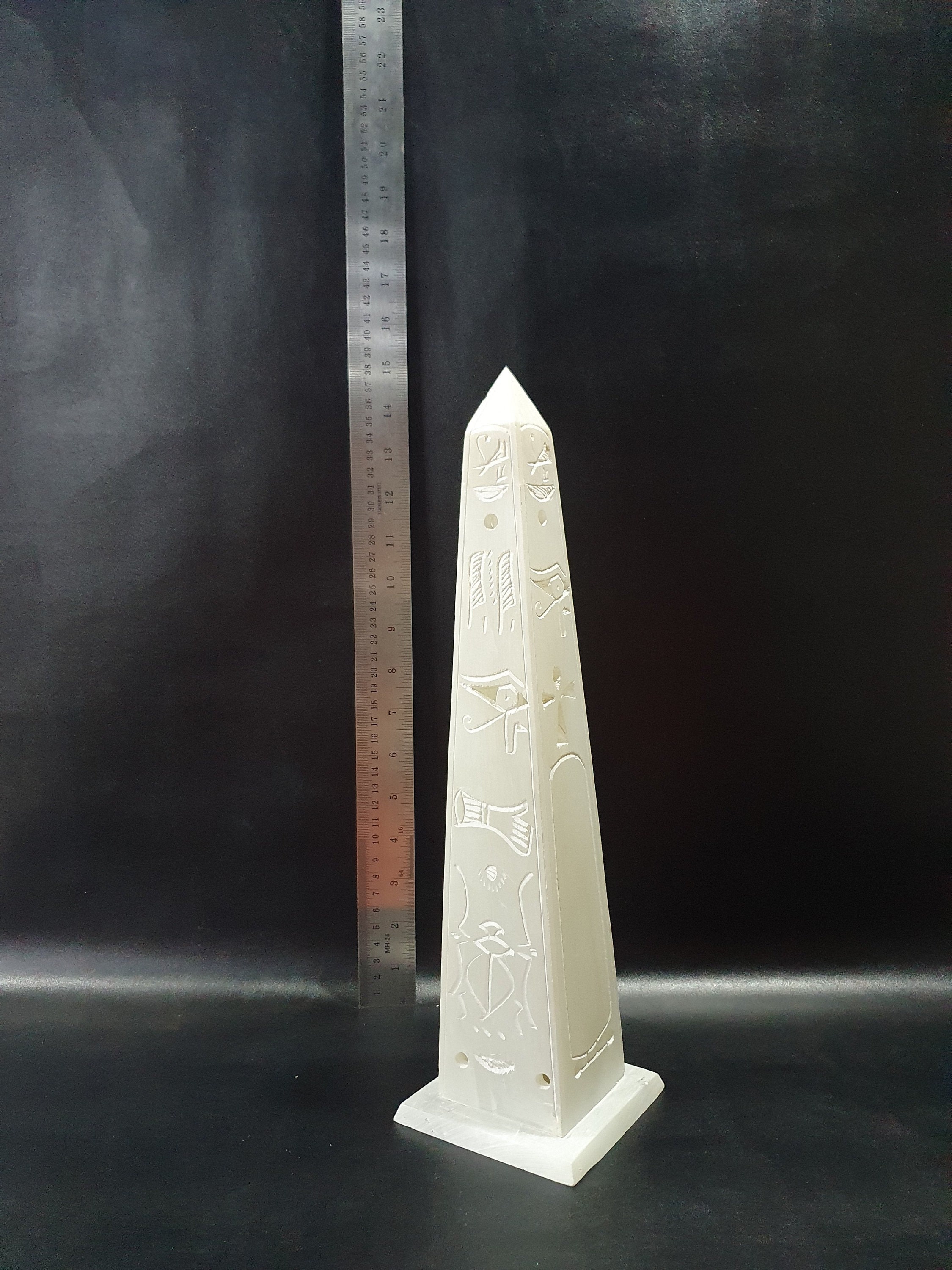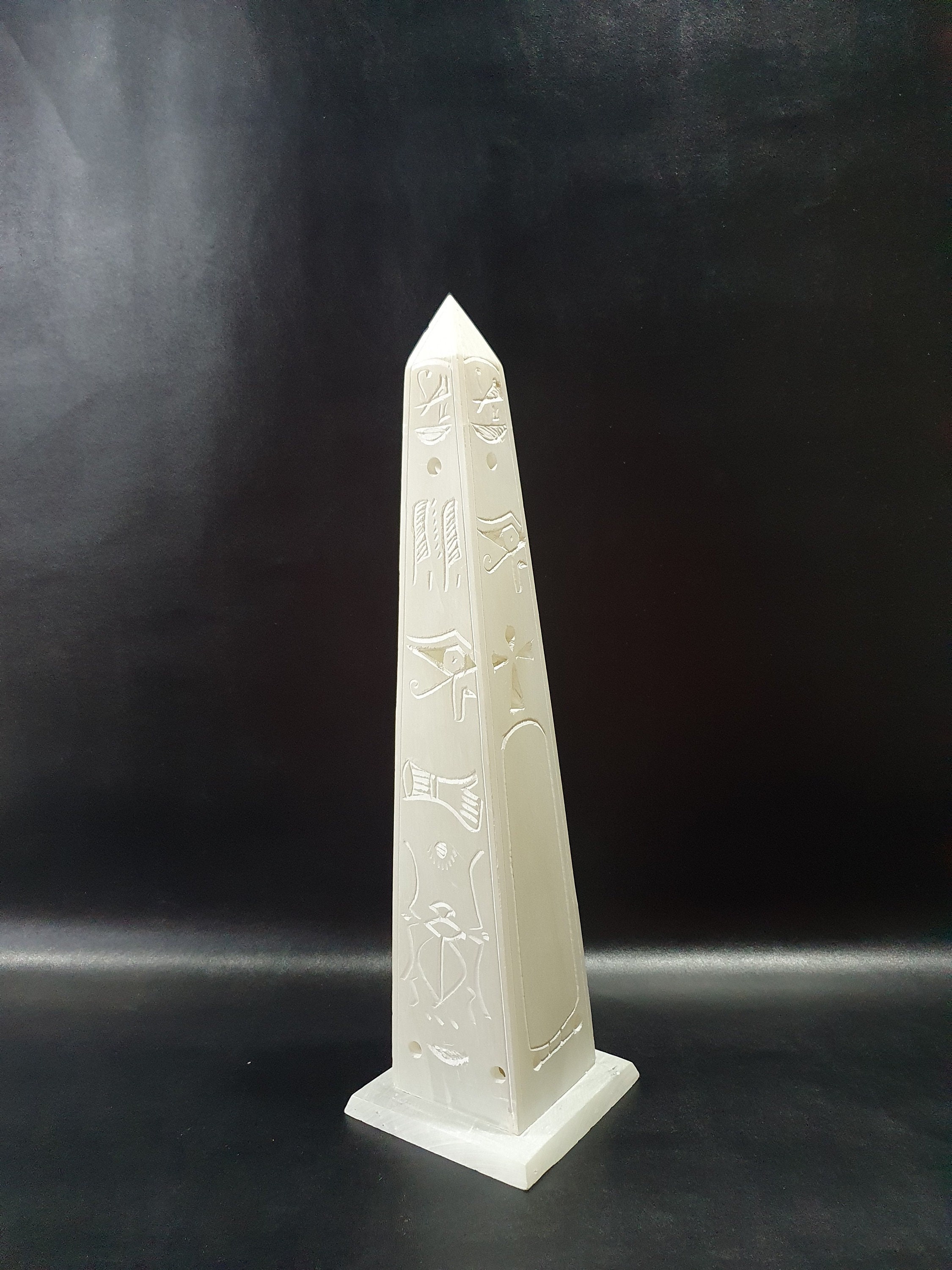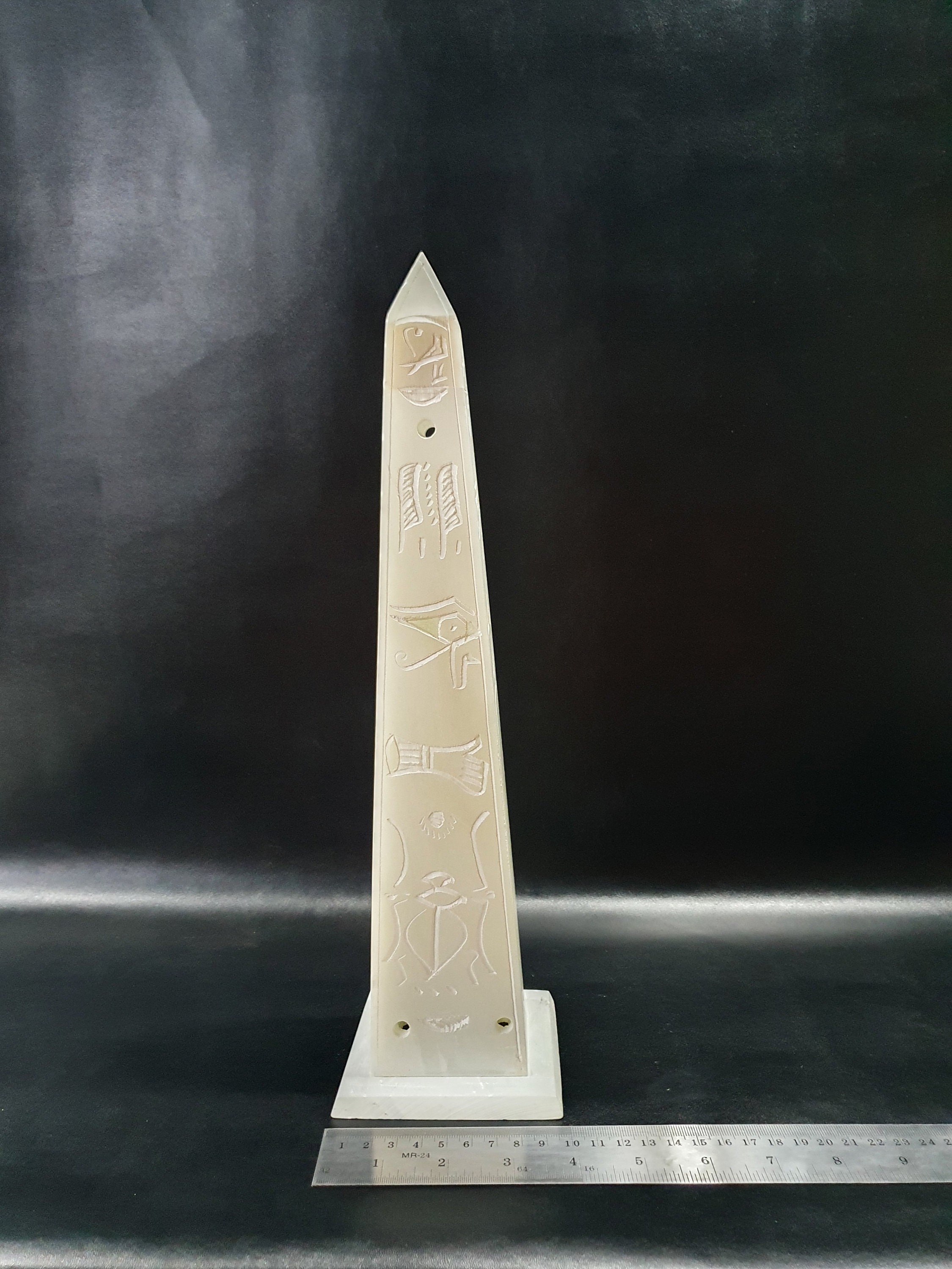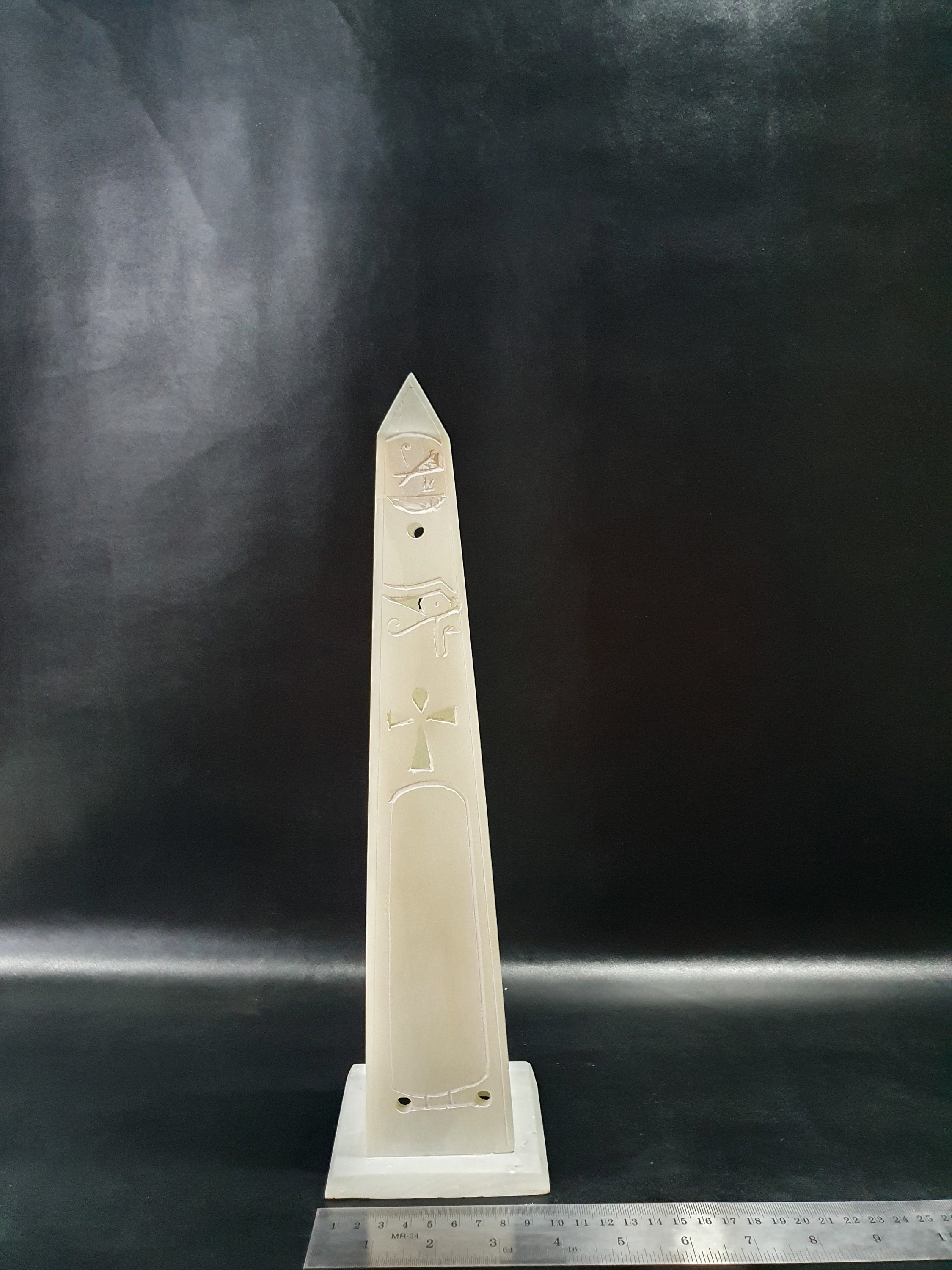 Unique Egyptian replica Handmade pharaoh Obelisk Hand made Inscriptions Made of white alabaster stone-Altar statue made with Egyptian soul