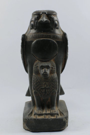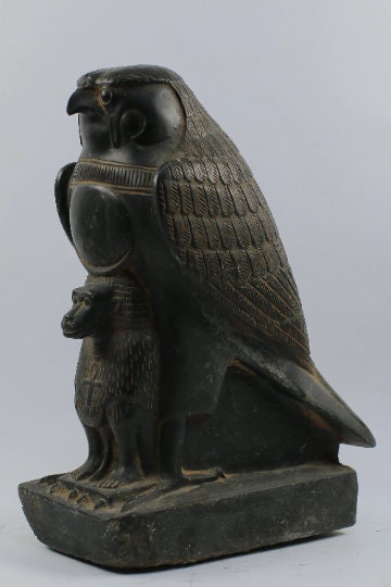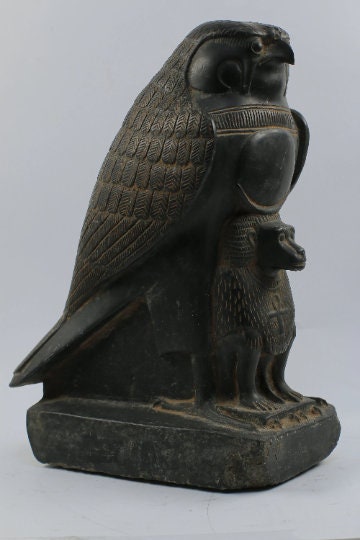 Unique replica statue of Horus, the Egyptian Falcon God protecting Baboon (Moon God Thoth), made From Basalt stone 10kg!
