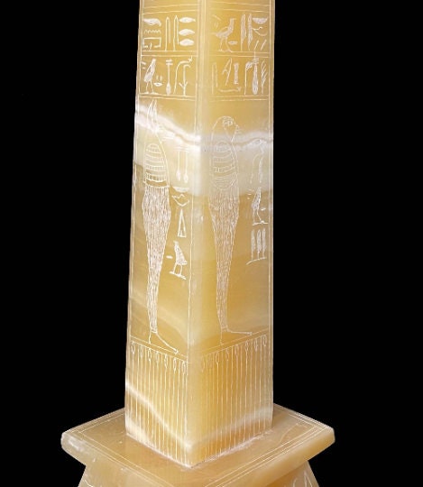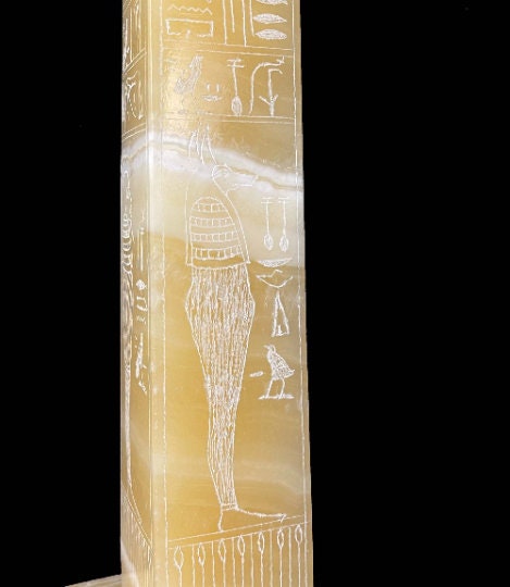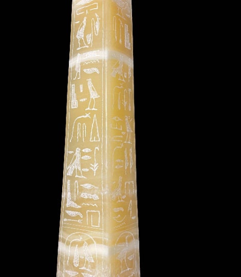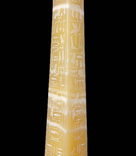 Marvelous Egyptian hand-made Alabaster stone Egyptian Obelisk, with finely detailed inscriptions from Ancient Egypt Civilization, with amazing hand carving and beautiful details and the marvelous Egyptian Hieroglyphs, Specially made for you 😉